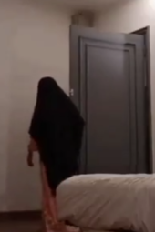 Cewek ber jilbab colmek di belakang pintu